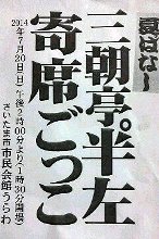 山上さんは、ドン・キホーテに登場する従者サンチョ・パンサをもじって「三朝亭半°左(さんちょうていぱんざ)」という高座名で落語会もやっていらっしゃるとのこと。