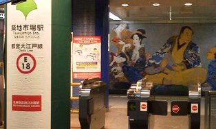 大江戸線の築地市場駅は、その名の通り、駅の階段をすぐ上がれば市場の門があり、その他に朝日新聞東京本社、がんセンター、意外に新橋演舞場もすぐ近くです。