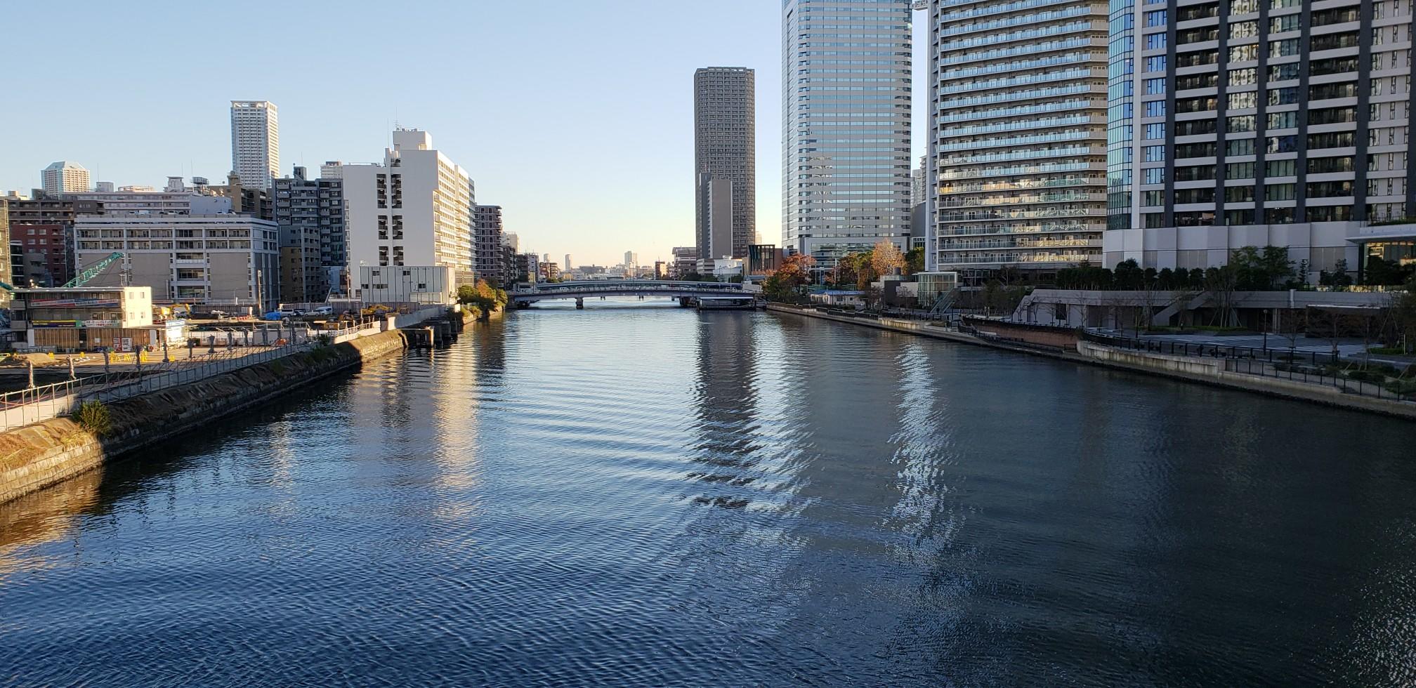 :ご注意:上流の歩道からは浜離宮は見えませんのでご注意ください。