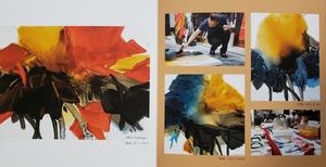 画家の代表的なモチーフの「蓮」と青で表現した「海」を加え