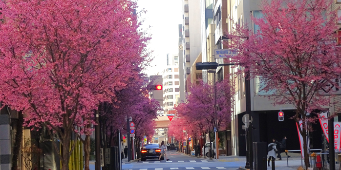 2026 江戸の名残が垣間見える 本銀通りのオカメザクラ