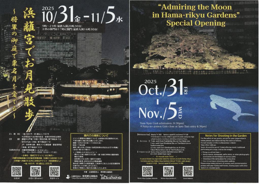 秋の中央区はイベント盛りだくさん! 【浜離宮でお月見散歩 ~将軍の御庭で栗名月を愛でる~】10月31日(金)~11月5日(水) 【"Must See" special event : Admiring the Moon in Hama-rikyu Gardens】Oct. 31 (Fri.) - Nov. 5 (Wed.)