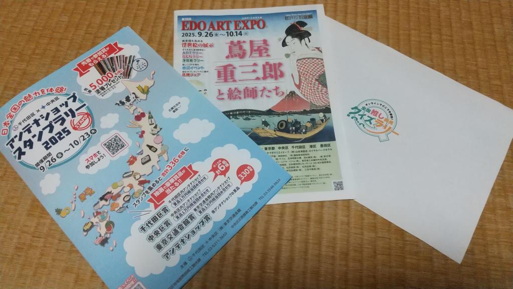 今、中央区内などで開催中のアンテナショップスタンプラリー、クイズラリーに参加しました。ようやく秋の気配を感じる中、ショッピングと良い運動になりました。
