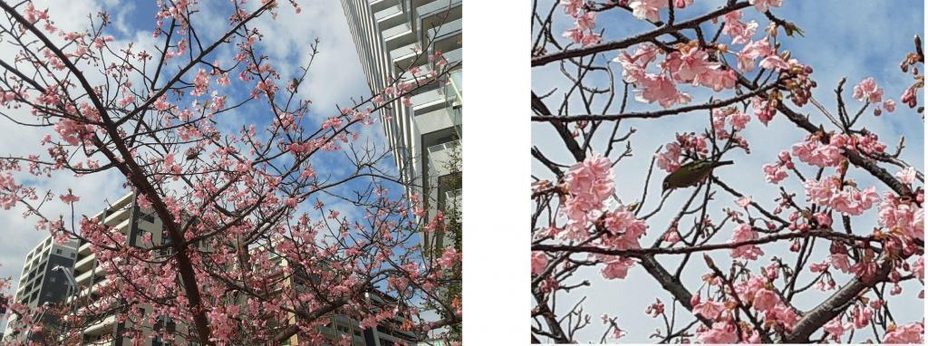 新川公園、中央大橋脇の河津桜。これを撮ったのは3月2日(東京マラソンの日)、