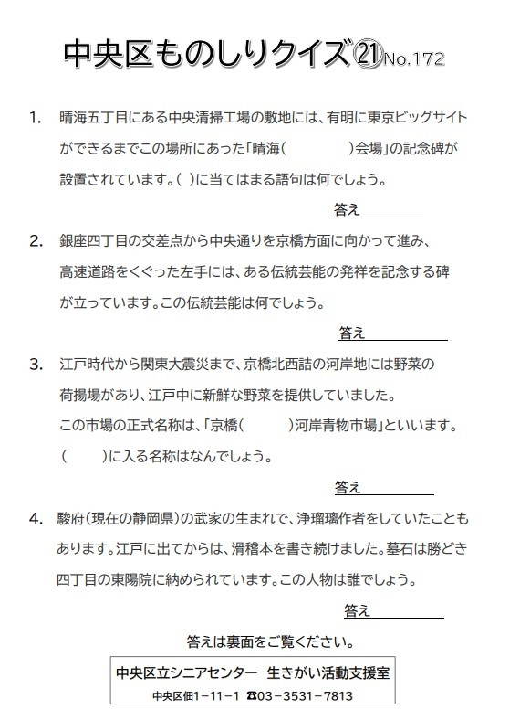 銀座から中央通りを京橋方向へ進み、首都高速道路の高架橋を越えるとすぐ左手には、小さな広場のようなスペースがあり、多くの史跡やモニュメントが並んでいる。その中の一つが「京橋大根河岸青物市場跡」。