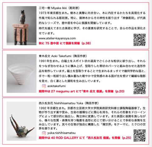「日本橋、京橋は古くよりお茶道具や古美術を扱う店が軒を連ねる街であり、現代ではコンテンポラリーアートのギャラリーも加わり、文化の中心として発展を遂げています。文化が生き継がれているアートの街で「過去の技術や思想を受け継ぎ今に繋ぐ」という在り方に共鳴する作品制作をされているアーティストの方々を招き、アーティストトークを開催します。」