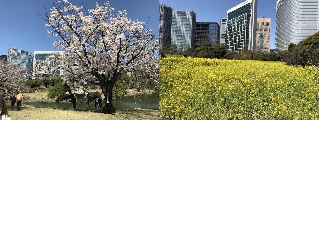 ㉔浜離宮恩賜庭園:桜も見頃で、菜の花も満開です。外国人の方も多数、来園されていました。この時期、中央区民は無料で入園できますので、詳細は以下のリンクをご覧ください。サトザクラなど約100本。