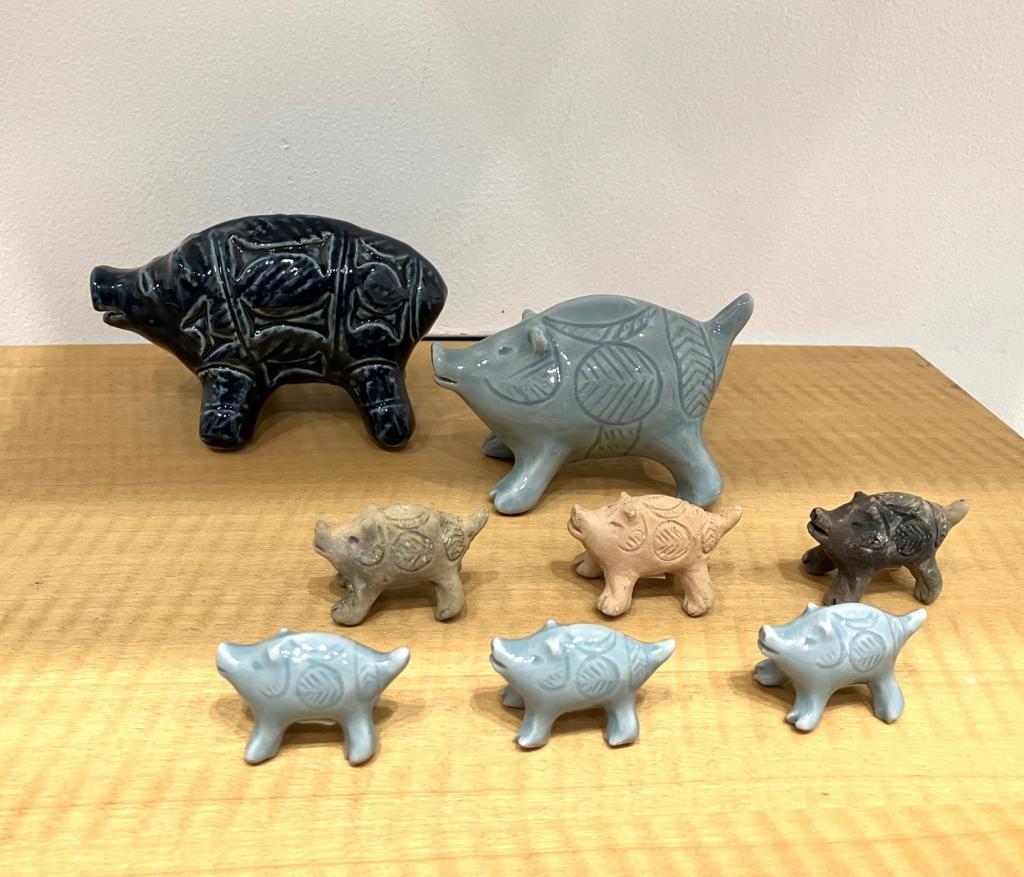 青森で出土した猪型土製品をモチーフに制作したオブジェです。