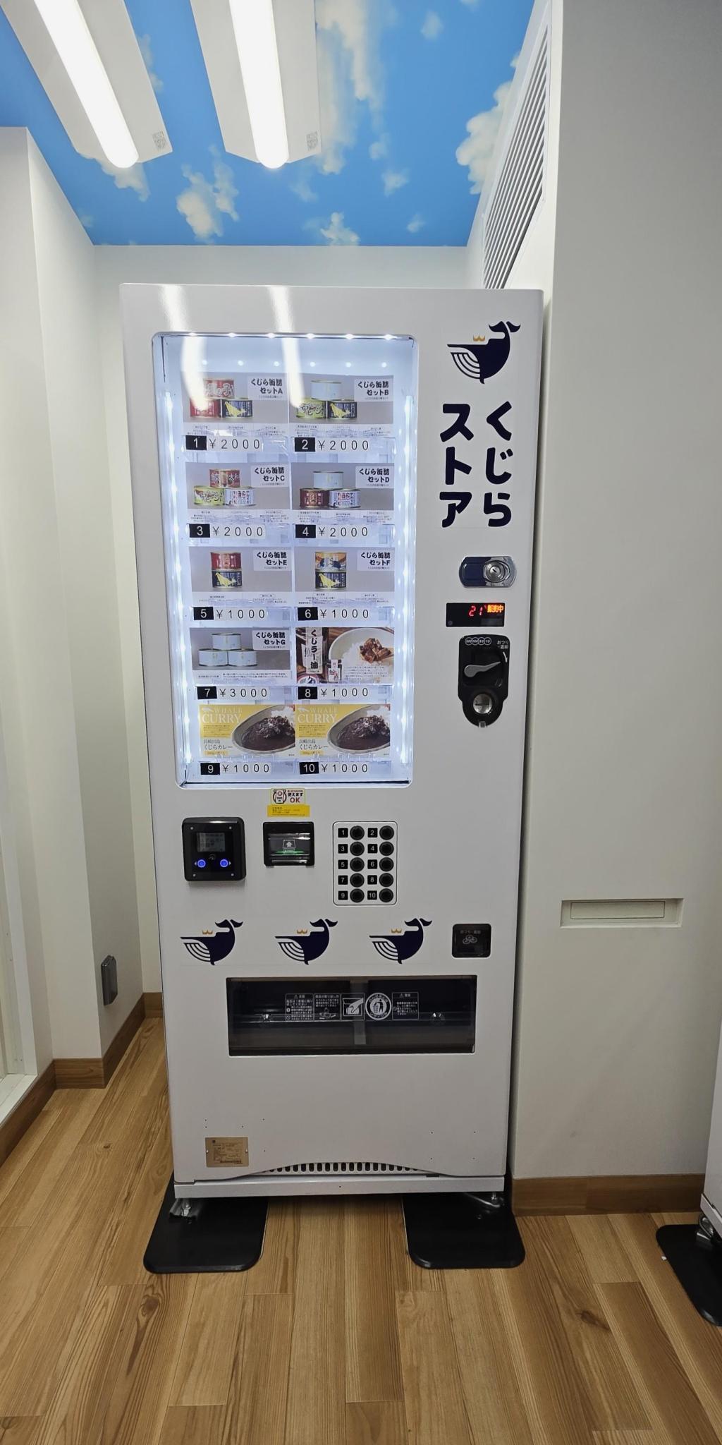 店内には自販機が3台あり、缶詰めの他に鯨のそれぞれの部類や加工品を冷凍で販売していまして、鯨が懐かしいという方にはおすすめかと思います。