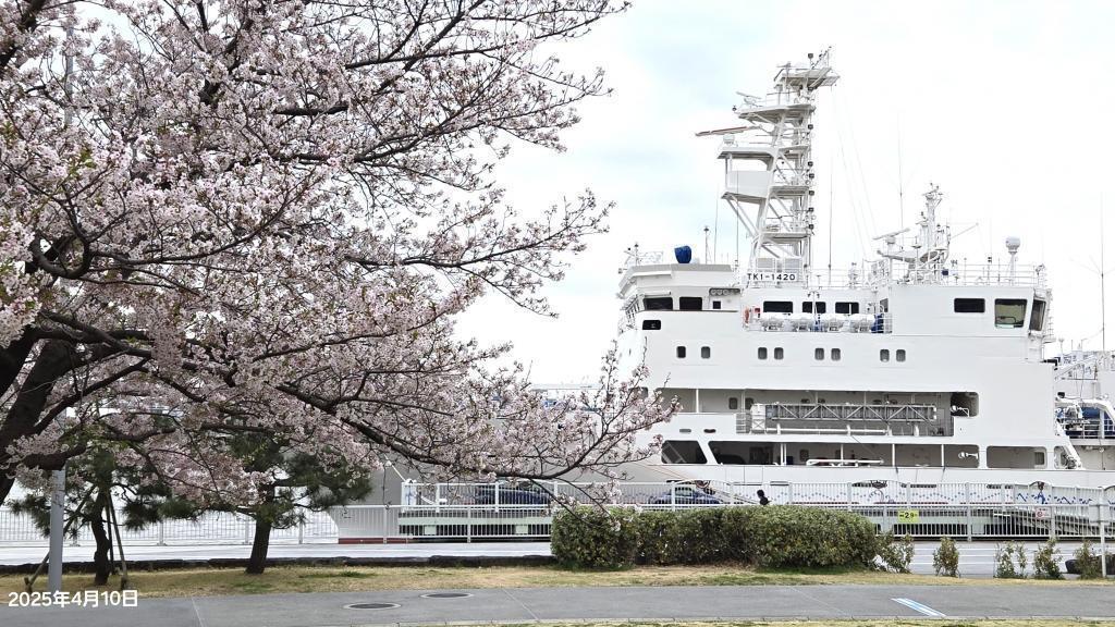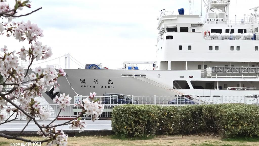 岸壁には水産庁の「開洋丸」が停泊中で、公園に彩りを添えていました。