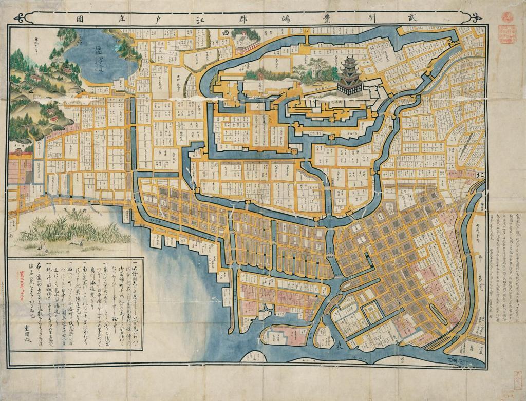 寛永9年(1632年)に書かれたとされる、初期の江戸図を代表する絵図「武州豊嶋郡江戸庄図(ぶしゅうとしまごおりえどのしょうず)」(写真)は、現在知られている限りで、最も古く、内容が正確だと言われている江戸図で、初期の江戸の町を知ることができます。