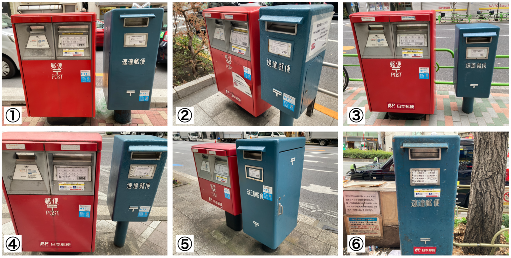 速達専用のポストは通常のポストより少しスリムな見た目で、青みのある色が特徴です。