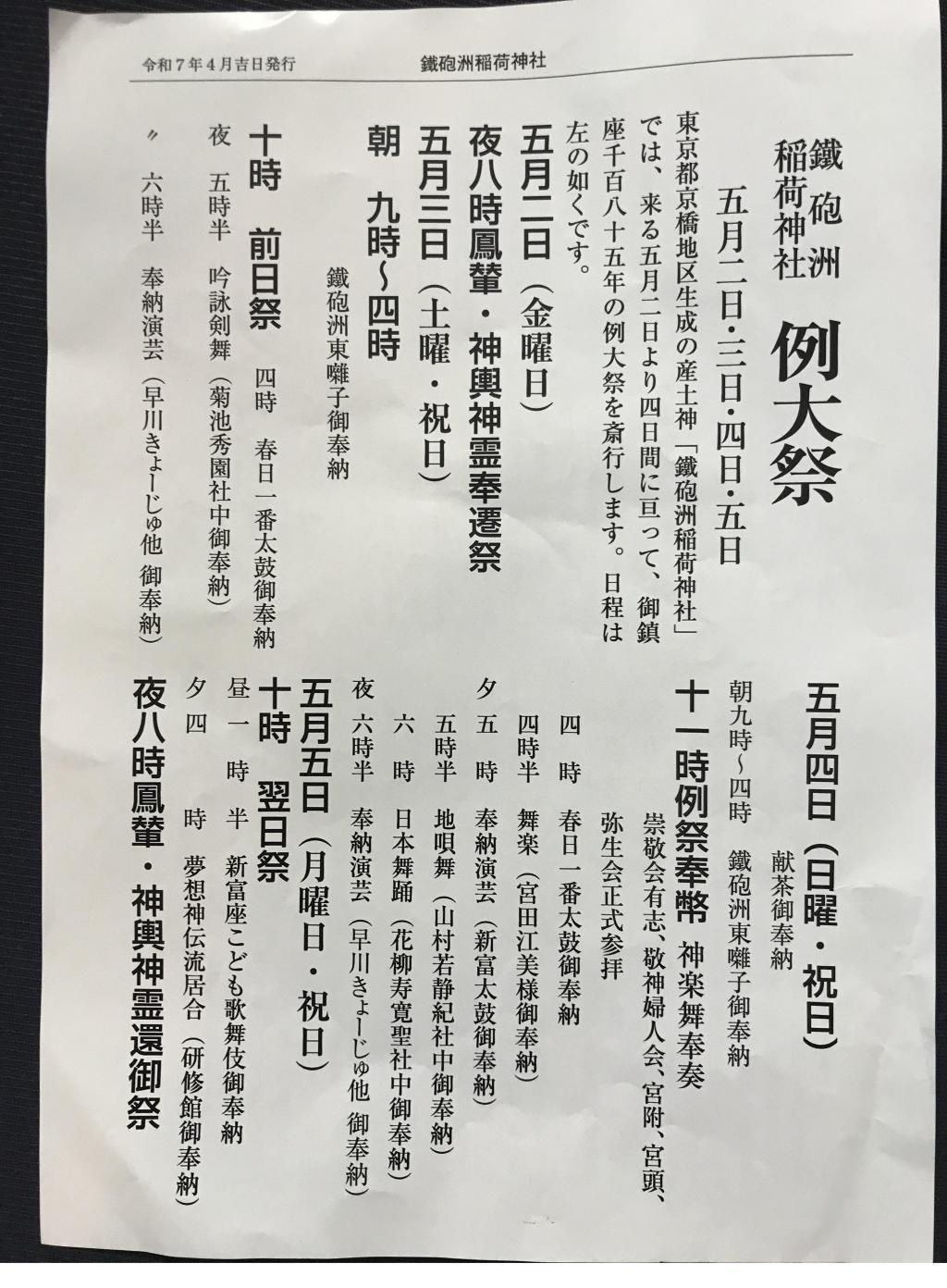 【5/2(金)~5/5(月) 鐵砲洲稲荷神社 例大祭】