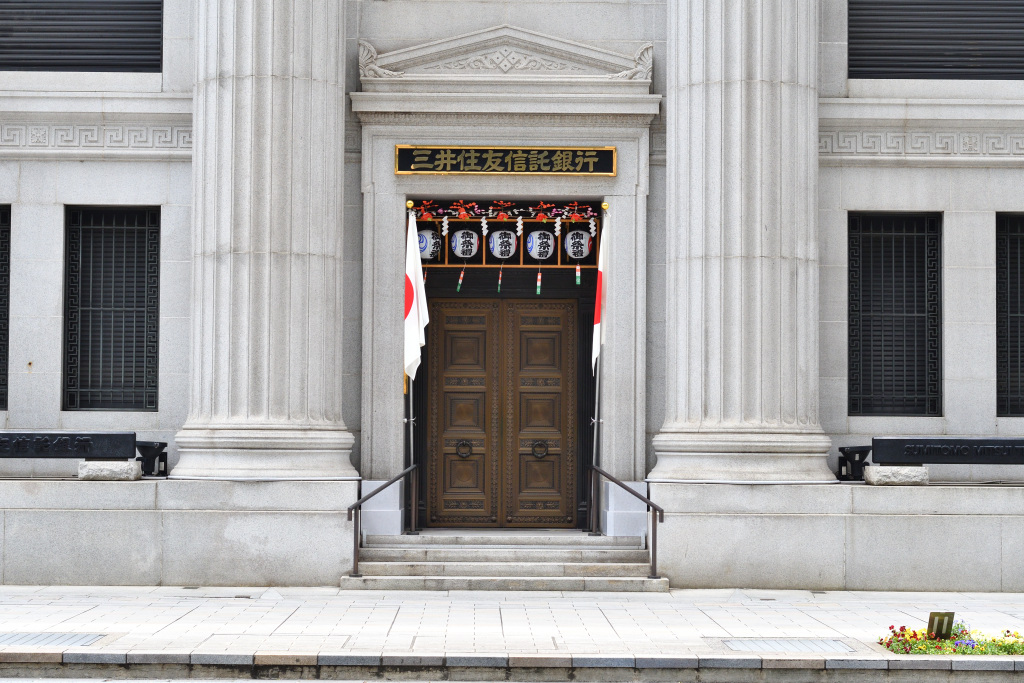 Even banks are decorated with lanterns.