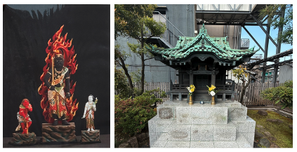 松屋銀座の屋上に龍光不動尊が祀られていることはご存知の方も多いと思います。この中には写真の左側にある綺麗に着色された不像明王がいらっしゃるそうです。