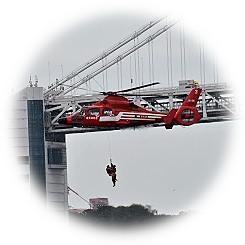 昭和11(1936)年、「みやこどり」と命名された1艇の消防艇が京橋消防署築地出張所へ配置されたのが東京における水上の消防の始まりとされます。 昭和17年には水上の消防に特化した「東京水上消防署(現 臨港消防署)が設置され、昭和24年、水上消防を都民に披露する「第1回水上消防出初式」が隅田川に於いて実施され、その後、会場を晴海ふ頭へと移し、受け継がれ、昭和45年、東京港まつりの行事の一つとして「水の消防ページェント」と名称を変え、東京港の安全を守る消防の姿を都民の皆様に披露し、消防への理解と防火防災意識の高揚を図ると共に、船舶の火災予防や水難事故防止を呼びかけることを目的に回を重ねてきましたが、令和元年の開催以降、コロナ禍や晴海客船ターミナルの閉鎖といった出来事が続き、開催が見送られ、昨年5年ぶりに晴海ふ頭公園西側海域を会場に漸う再開の運びとなり、今年も引き続き、5月18日10:00~15:30の日程にて開催されました。 開式後、臨港消防署、高輪消防署及び日本橋消防署に配置された8艇の消防艇の「分列航進」を皮切りに、国内初のタグボート型大型消防救助艇「おおえど」の唯一無二の性能披露「大型消防艇旋回放水」、航行中の水上バスから出火し海上に投げ出された乗客の救助 船舶火災の消火演技等を消防艇と消防ヘリコプターが連携して行う「消防演技」、消防ヘリコプター3機編隊飛行と消防艇5艇からの鮮やかな「"5色カラー" 一斉放水」、アニメキャラに扮した消防隊員も登場する「フェアウェルパレード」が繰り広げられました。 12:30から臨港消防署敷地内にて防火防災体験イベント、13:00から臨港消防署護岸にて消防艇「みやこどり」の一般公開、11:45から晴海ふ頭公園内のステージにて東京消防庁音楽隊の演奏·カラーガーズ隊演技をはじめとしたステージプログラムが組まれています。
