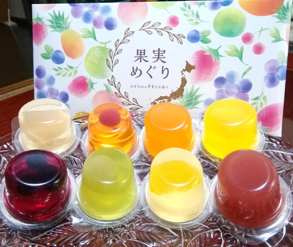 日本各地のフルーツを使った、色とりどりの8種類のゼリーです。