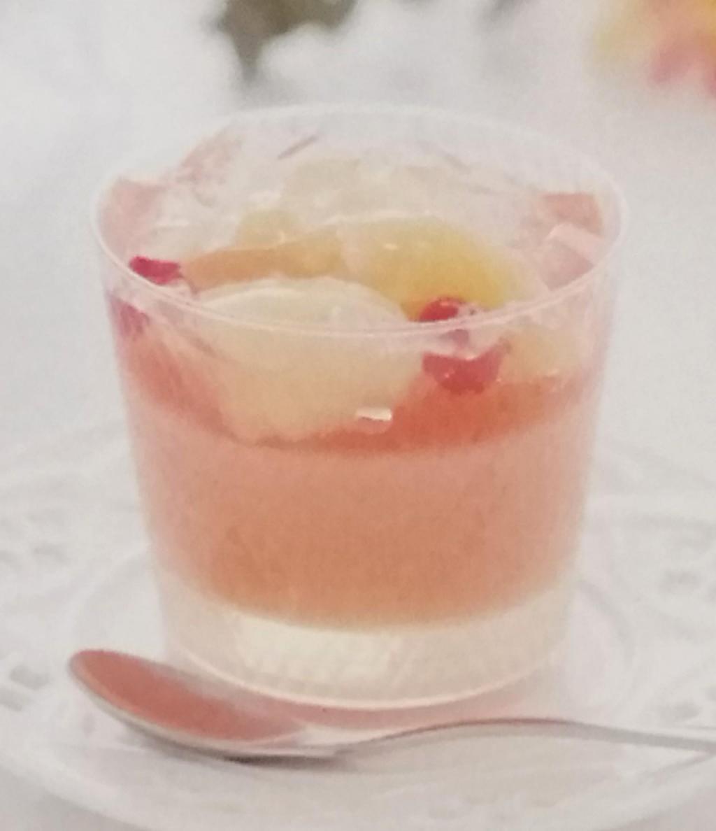 澄んだ色のゼリーの中に浮かぶ瑞々しい果肉、まるで宝石のようです。