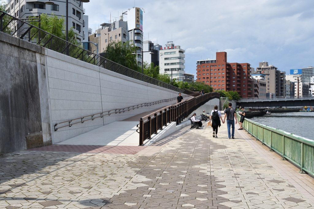 If we think of the Sumida River Terrace as one of the city's potential emergency evacuation routes, the new slope also improves accessibility for emergency vehicles and delivery carts, making it a valuable addition to building a more disaster-resilient city.