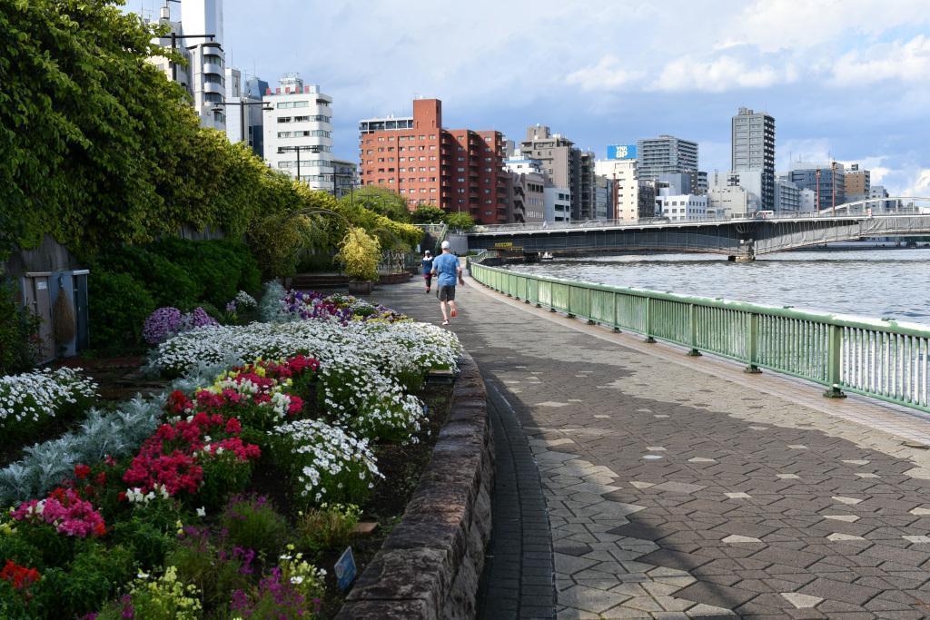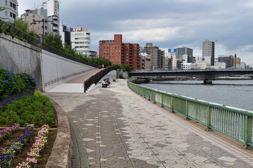 The Sumida River Terrace, the promenade along the river, is steadily being improved year by year. Even before the slope near Ryogoku Bridge, similar slopes have been installed at the confluences where the Tatekawa River and Nihonbashi River meet the Sumida River, as well as on the downstream side of the east bank of Eitai Bridge and the upstream side of the east bank of Kachidoki Bridge. These additions have eliminated the need to make detours at river junctions, making the entire area more walkable and interconnected. I’m very pleased to see the continued enhancement of the Sumida River’s appeal.