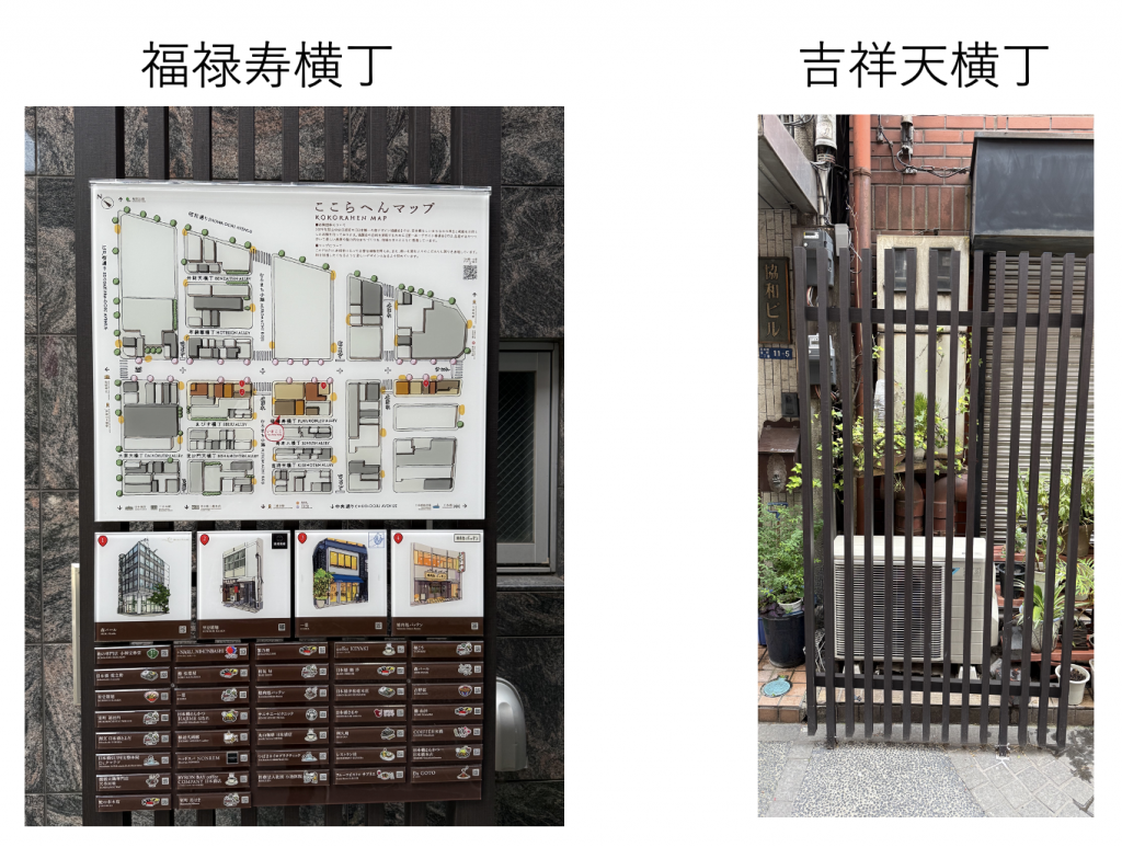 6月末現在では吉祥天横丁は「ここらへんマップ」が設置されていませんでしたが、設置可能なようには見えました。
