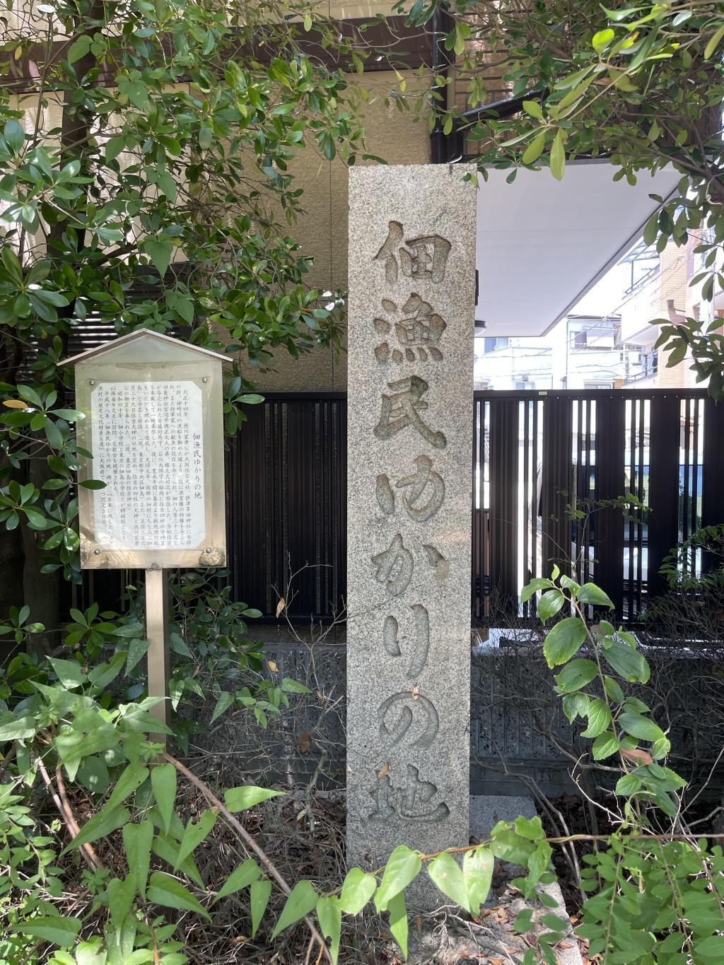 佃漁民ゆかりの地の碑がある田蓑神社へ