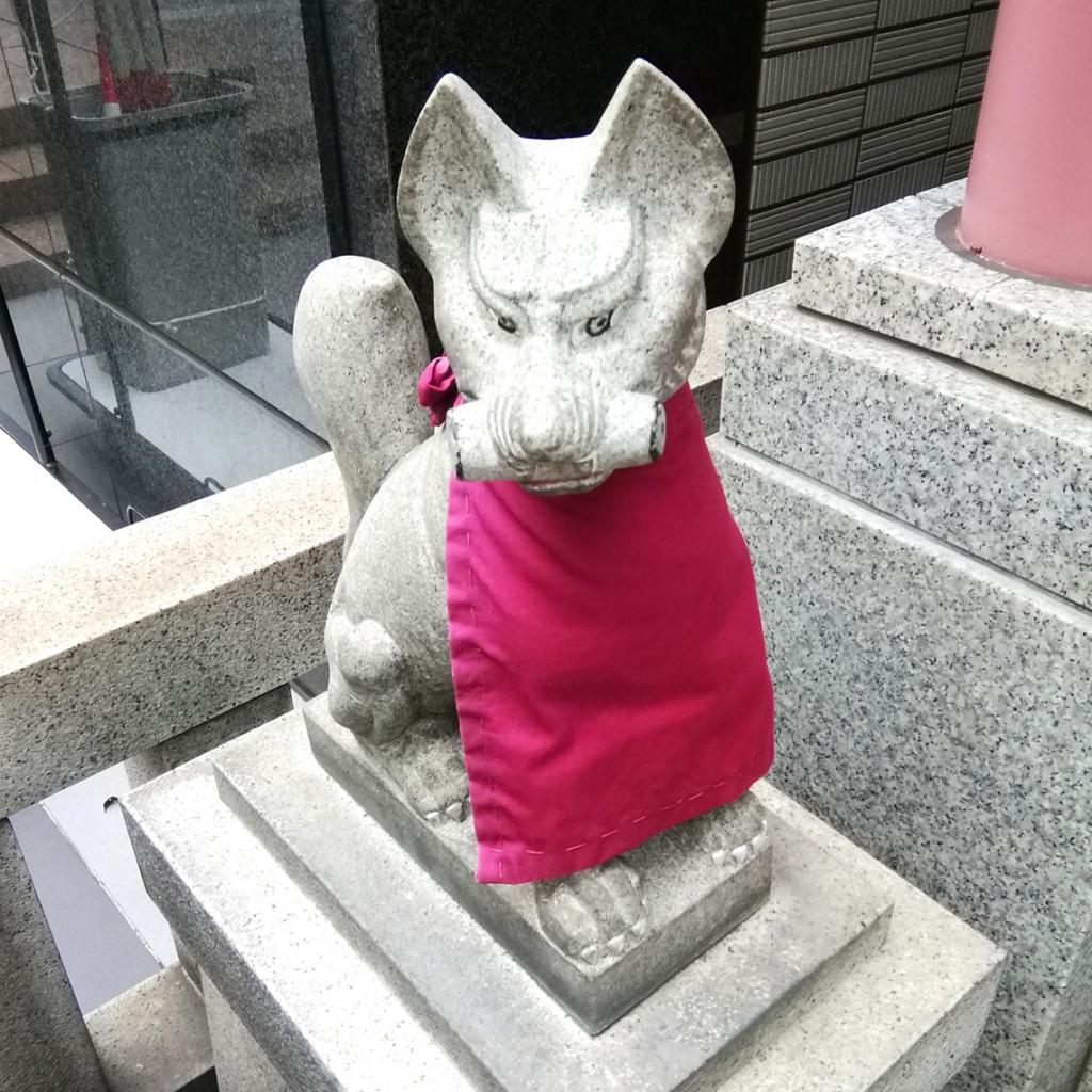 なお、冒頭画像は浜町2-31-1、明治座分社の左の狛狐です。また趣向を変えまして左からのご紹介です。