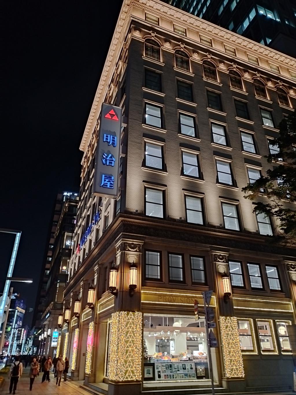 タイトル画像は、「京橋エドグラン」の隣にある、ライトアップされた、「明治屋京橋ビル」です。中央区指定文化財の「明治屋京橋ビル」は、昭和8年(1933年)に建設され、建物の地階と地下鉄駅(銀座線京橋駅)とを連絡させて設計・施工された、現存最古の民間ビルディングです。