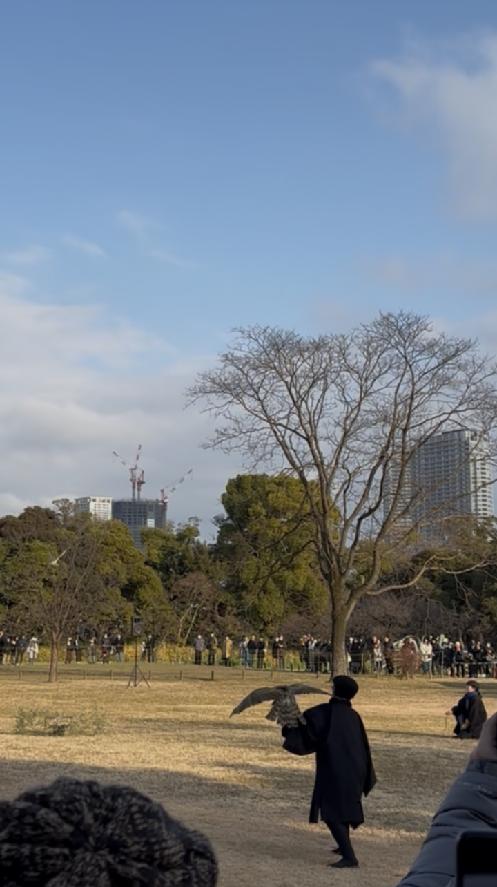 浜離宮恩賜庭園では、お正月に放鷹術の実演を行います。
