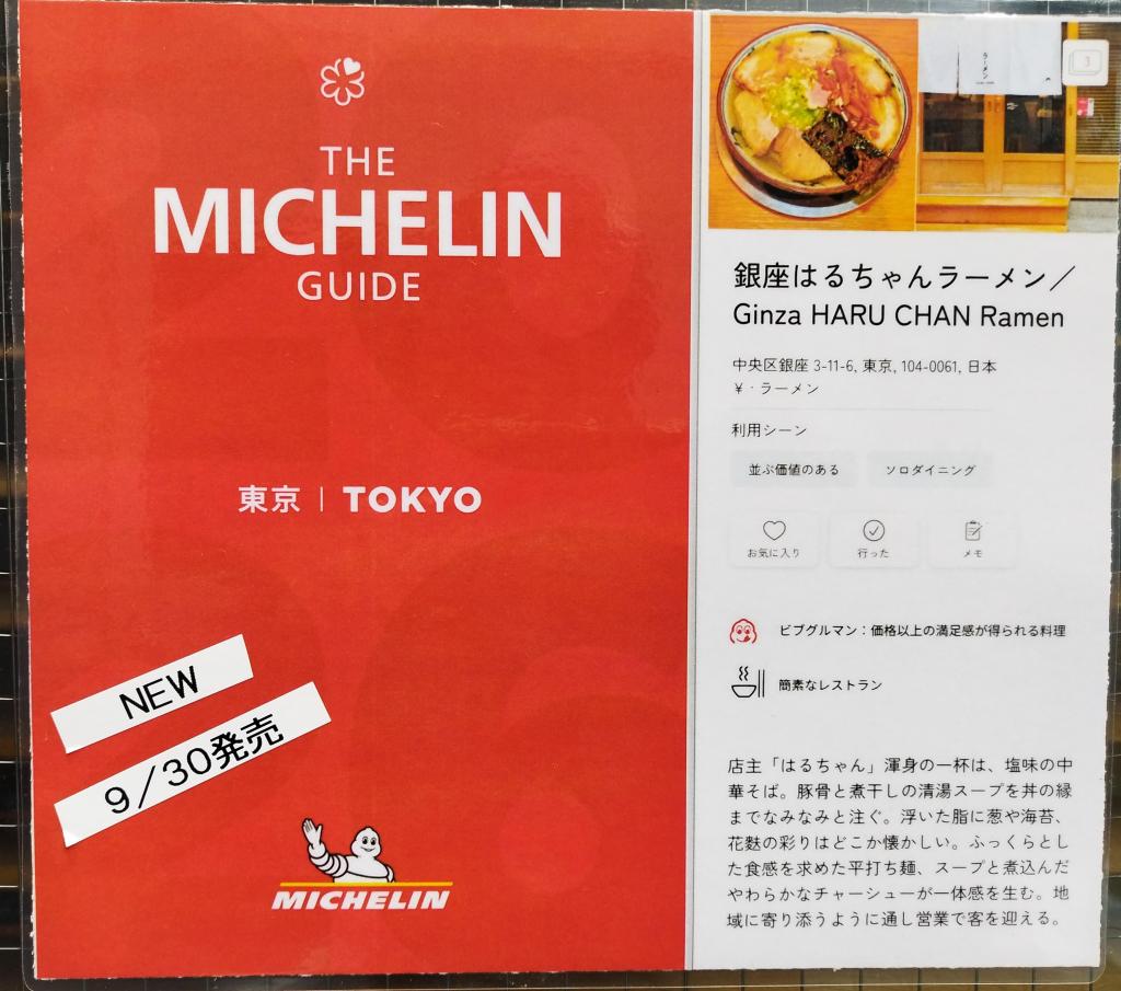 タイトルのコメントは、ミシュランガイドの、「銀座はるちゃんラーメン」のコピペです(↓)。(これ以上ベストなコメントが思いつきませんでした。。。)