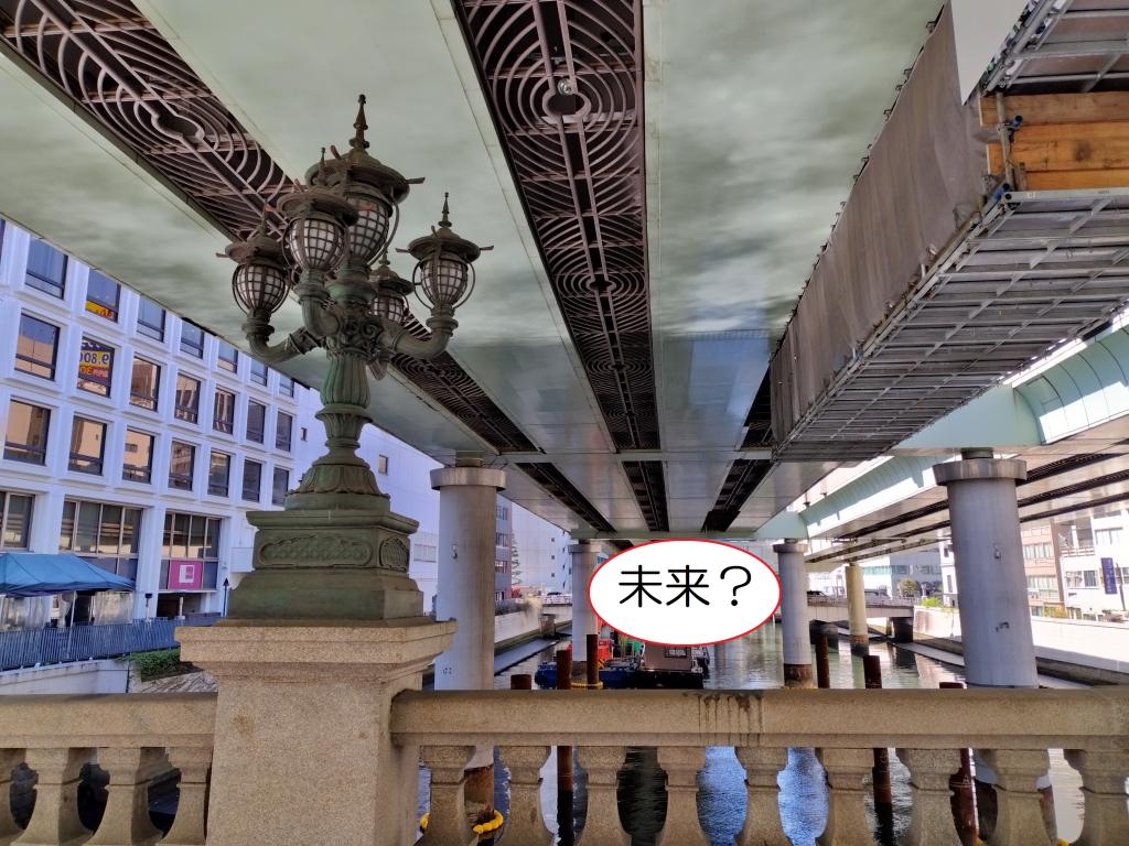 タイトル画像は、北斎の絵と同じように、日本橋の上から日本橋川の上流を眺めた風景です。日本橋川の上には高速道路が架かっており、また、前方にはビルが建ち並んでおり、青空も富士山も見えません。現在、高速道路の地下化が進められており、2040年代には、北斎の絵と同じように、日本橋川の上に青空が広がる景色が見られるようになります。