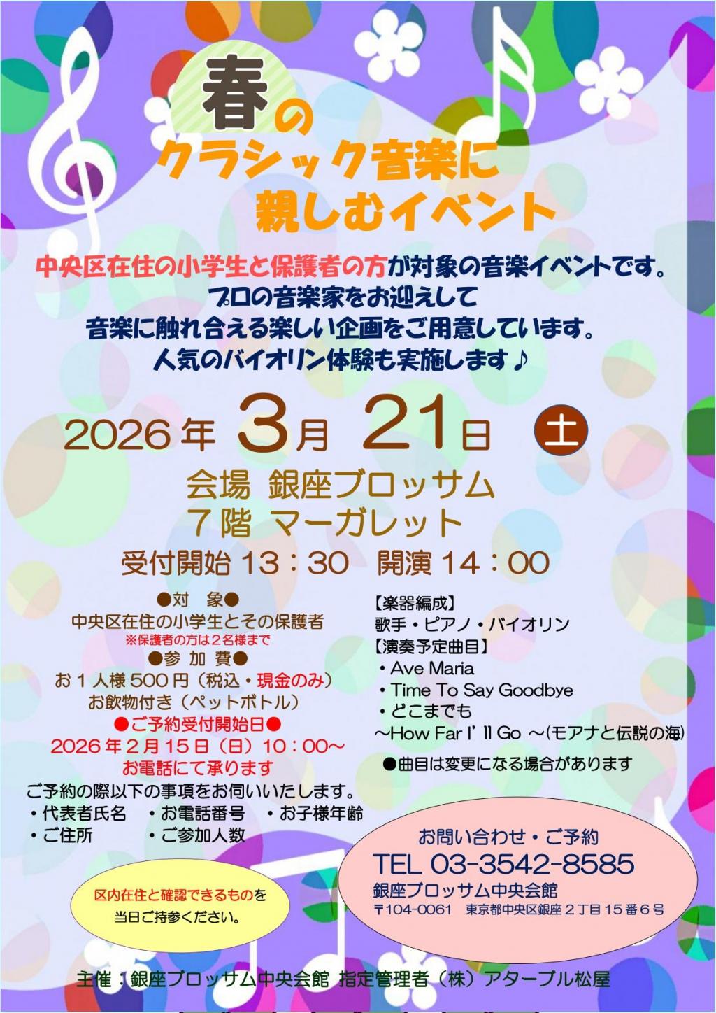 「春のクラシック音楽に親しむイベント」が開催されることになりました!!