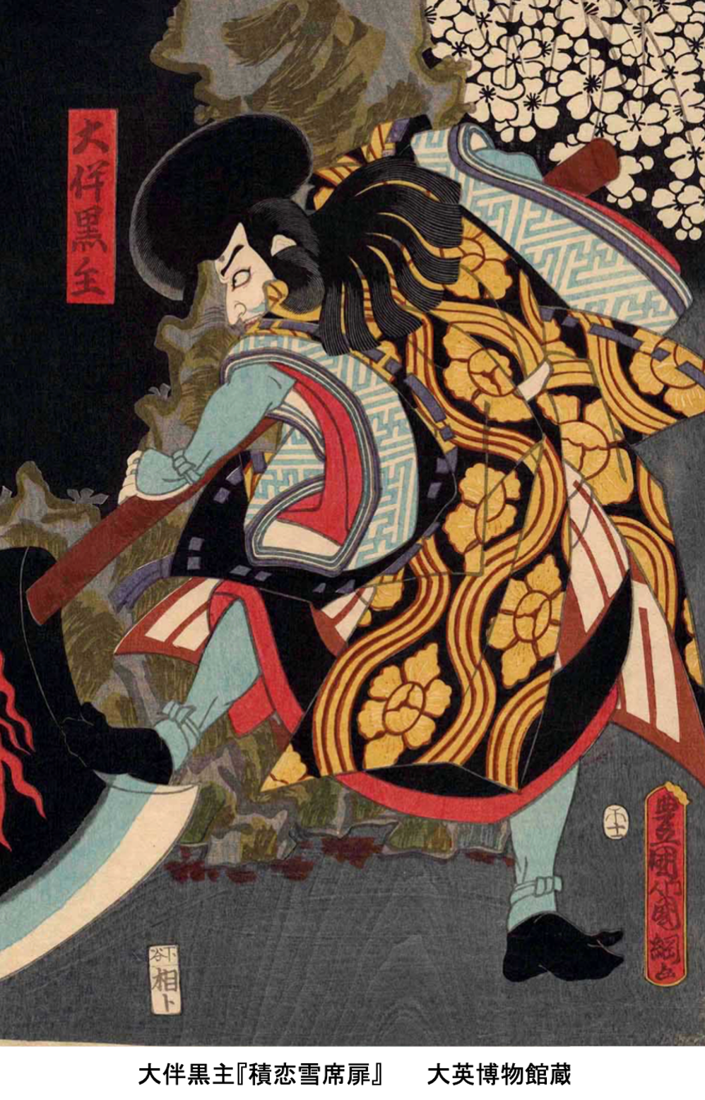 「大名」は三ツ杵の紋の柿色に袴を着し、三ツ杵模様の長袴をはき、浅葱地色に熨斗目の着付、小刀を帯し、扇を持っている。