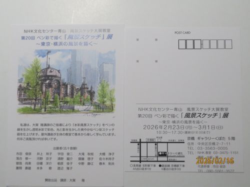 皆さん 突然ですが退職後趣味として何かしていますか?私は現役のとき国内外の出張にsketch bookを持参し、ちょこちょこと自己流で水彩画を描いていました。退職後しばらくしてあるカルチャー教室の水彩画教室にはいり、写生を主として月1回屋外で写生をしています。仲間は20人弱です。その仲間が年1回京橋のギャラリーで作品展を開催しています。今年でもう20回になります。会場は京橋ですのでご覧いただければ幸甚です。