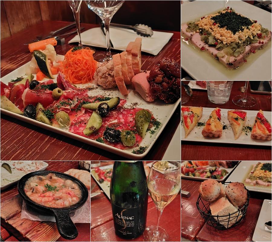 前菜盛り合わせは、生ハムやサラミ、リエットまで並び、