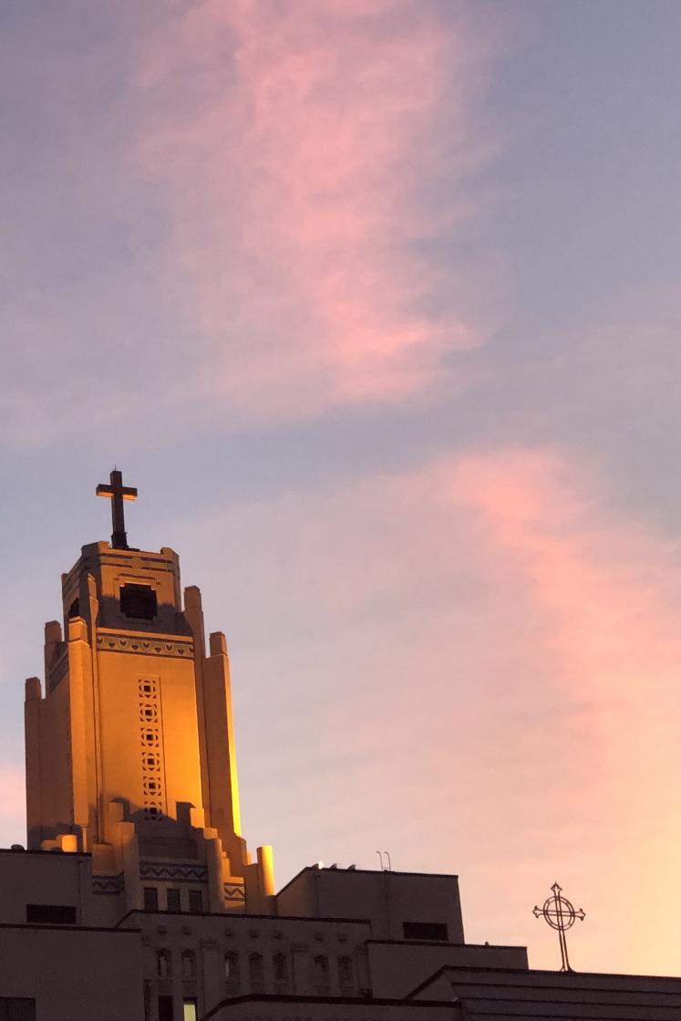 ということで、今回ご紹介するにあたり第一日曜日に行われている「夕の祈り」に参加してみました。30分のパイプオルガン演奏、司祭のお話、そして聖歌の合唱が行われます。パイプオルガンの響きもチャペル内の雰囲気も以前と変わらず厳かで美しいものでした。照明に照らされた礼拝堂内部も陰影ができてとてもキレイでした。皆さんもぜひこの特別な異空間を体験してみてください。キリスト教徒じゃなくても大丈夫。「どなたでもお気軽にお越しください」とチャペルのホームページに書かれています。なお、礼拝時の入口は明石小学校側の旧館1階北口だけのようですのでご注意を。
