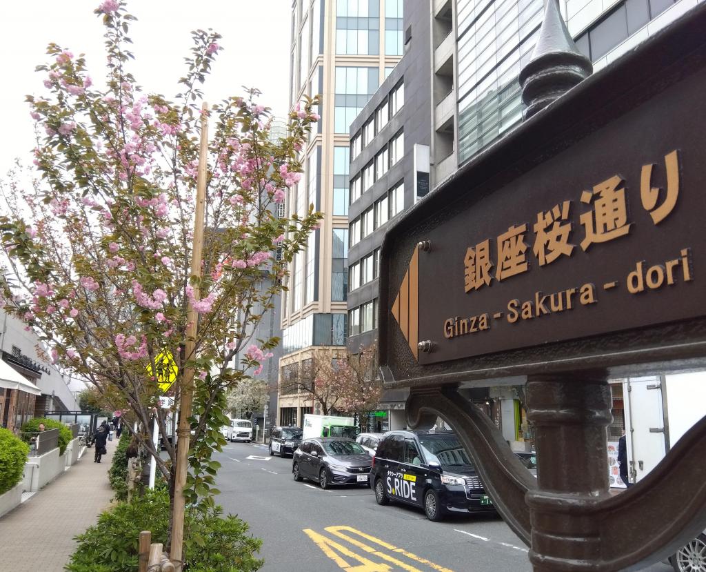 「これから春本番!」を告げる『銀座桜通りの八重桜』の開花が始まりました。