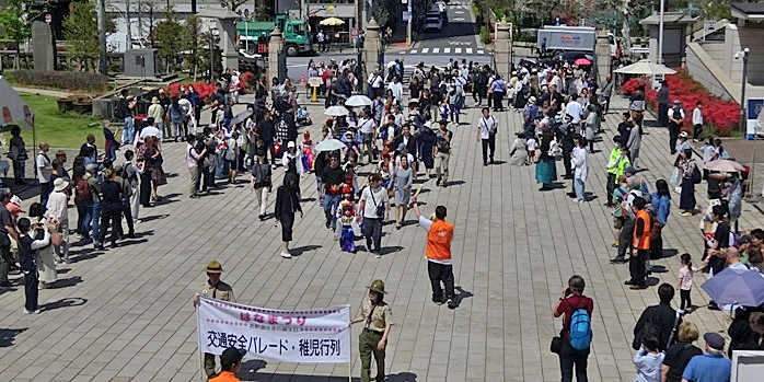 4月8日は伝承に基づく釈迦の誕生日。仏教寺院ではこの釈迦の誕生を祝って古来「灌仏会」「仏生会」の名で仏教行事が執り行われてきましたが、「花まつり」の名で催され始めたのは明治の終わりで、1916(大正5)年、日比谷公園で各宗派連合の花まつりが初めて開催され、その後花まつりの名称が定着していったとされます。 母親の摩耶夫人の夢に白い象が現れ、その後妊娠し、ルンビニの花園で釈迦は誕生し、生後すぐ7歩 歩み、右手で天を、左手で地を指し、「天上天下唯我独尊」と唱えたとされ、この時、天から竜が現れ、甘露の雨を降らせ、その誕生を祝福したと伝わります。 この故事に準えて、ルンビニの花園を模った花御堂を設え、中に誕生仏を安置し、参詣者は、小さな柄杓で水盤の甘茶を汲み、仏頭から注いで誕生日を祝う習わしです。 築地本願寺では、4月11日(土) 10:00~16:00、「はなまつり」が開催され、11:30からの灌仏会に先立ち、11:00から、古式ゆかしい装束を纏い、化粧をし、お飾りを付けた、可愛い子供たちの「稚児行列」(交通安全パレード)が繰り広げられました。 本堂では「未生流笠岡による花展」が開催され、境内では、ファミリーコンサート、スリランカ伝統舞踊、インド伝統舞踊、大江戸助六太鼓演奏等のステージイベント、飲食コーナーが設営され、大勢の人で賑わいました。