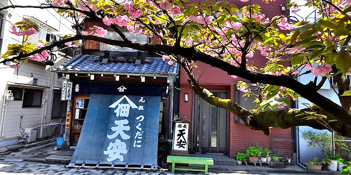 関山(カンザン 別名セキヤマ)は、バラ科サクラ属の落葉亜高木~高木で、狭義にはオオシマザクラを基に多様な野生種と交配して作出された園芸品種群を指すサトザクラの大半を占めるとされる所謂 "八重桜" の代表品種に数えられます。 花弁の色は濃紅色で、花と葉が同時に展開し、若葉は赤みを帯び、ソメイヨシノに比べて、1~2週間ほど遅く開花し、散るまで比較的長持ちし、枝は内側に向かって弓なりに曲がり、全体的には盃状の樹形となる特性があるとされます。 鑑賞性の高い花色で、樹勢強健で育てやすく都市環境にも適応力があることから、街路樹や公園樹として広く植栽されており、華やかな色合いと、大輪で花弁が幾重にも重なりボリューム豊かに咲き誇る様は海外でも人気の桜と聞きます。 花弁は塩漬けすると独特の香りが引き出され、和菓子、あんぱんなどの香味付けに用いられる他、茶碗の中で花開く様子から縁起物として、祝い事の席で桜湯(桜茶)として振舞われます。 元佃の、江戸時代創業の老舗の佃煮屋が並ぶ通りでも、街角に彩りを添えています。